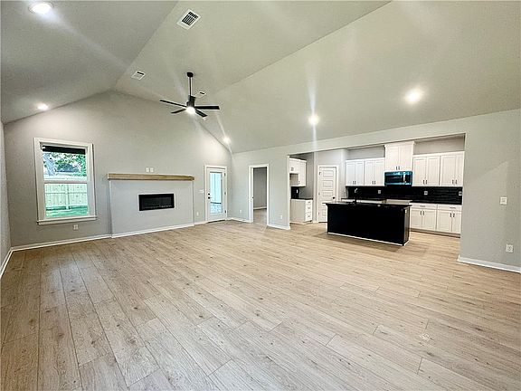 5.49% INTEREST RATE/BUILDER BUY DOWN & fence, blinds and gutters included! Discover your dream home in the new neighborhood- Jacob's Crossing. Caden plan with 1 level, garage on the right & West facing! 13 ft ceilings in the living and dining, linear electric fireplace, LVP flooring throughout the main living areas & primary bedroom, quartz countertops & more. Chef's kitchen boasting frigidaire stainless steel appliances, gas range, pantry, quartz countertops, bar pull handles, large island & gorgeous backsplash. Luxurious primary bedroom features abundant natural light, while the spa-like primary bathroom offers a walk-in shower, double sinks, tub & spacious walk-in closets. Additional features include two large secondary bedrooms & a functional laundry room. Nestled on a generous lot with covered patio that overlooks the serene sodded, fully fenced backyard, creating an exceptional living experience. Sturdy concrete siding! Model home located at 3631 Tranquility St- Lot 1.