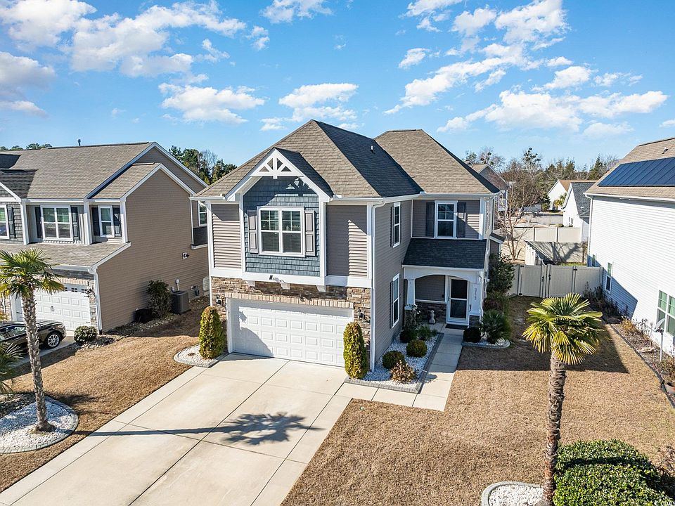 Do not miss this stunning 3 bed 2.5 bath home located in the popular community of Clear Pond at Myrtle Beach National! This immaculate home features a fabulous open floor plan with hardwood floors throughout the first floor, entryway with beadboard, a spacious living room with fireplace, ceiling fan and speakers and a formal dining room enhanced with coffered ceiling and wainscoting adjacent to the fantastic gourmet kitchen that boasts stainless appliances, tons of cabinet and counter space, double sink, tile backsplash, a gas cooktop, walk in pantry and breakfast bar with beadboard accents. Just off the hallway, a powder room with updated vanity and a flex room, which would be a great office or guest bedroom, completes the first floor. Upstairs, the luxurious master suite is a true oasis with tray ceiling and ceiling fan, a sitting area where you can curl up with your favorite book, two walk in closets, and a bath with double sink vanity, a garden tub and separate shower. The two additional bedrooms are also nice sized with plenty of closet space and the second full bath has a vanity and tub shower. Perfect as a media room or playroom, the loft area has plenty of space for everyone to gather. There is also a laundry room on the second floor with a folding table and shelving. Outside, the 6’ fencing provides wonderful privacy so you can really enjoy the extended paved patio with plenty of space for grilling and dining and the screened porch with ceiling fan will be your go to spot to relax with your morning coffee or cocktails at the end of the day. The exterior of the home has been meticulously maintained as well and features lush landscaping, with palm trees in the front and back, curbscape , rock garden beds and an irrigation system. A two-car garage with finished walls and extended driveway provides plenty of parking space for you and your guests. Clear Pond offers great amenities which include a clubhouse, two swimming pools, two volleyball courts, a fitness center, two children's playgrounds, and a walking trail. Located in an award-winning school district with easy access to Highways 501 and 31and close to shopping, so many dining options, golf, medical facilities, the airport and attractions plus you are just minutes from the beach and everything the Grand Strand has to offer. If you have been searching for your dream home, this is it! This is a home your whole family will enjoy for years to come! Schedule an appointment today and see everything that this lovely home has to offer!
