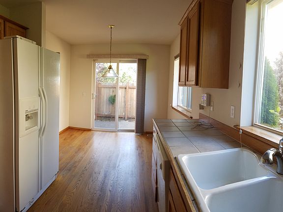 Gorgeous Master on the Main Floor Resale Near Mill Creek! This home has been updated w/fresh interior paint, updated lighting, refinished solid oak hardwood floors, & new carpeting. Vaulted ceilings in Dining & living room w/gas fireplace, & slider that leads to private patio & side yard. Light & bright kitchen, large pantry, w/cozy breakfast nook & slider to fenced patio area that's perfect for dining on summer nights. 2 car attached garage. Great location near I-5 & I-405.