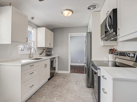 Beautifully remodeled rambler with several updates throughout! Fresh interior paint including walls, trim & doors! Gorgeous refinished hardwood floors throughout the main level & new windows. Spacious living room with floor to ceiling windows that flood the home with natural light! Space for your dining table & stylish built-in cabinets. Remodeled eat-in kitchen with another perfect dining spot, updated cabinetry & hardware, new LG stainless-steel appliances, tile backsplash & more! 3 main level bedrooms, all with hardwood floors & a remodeled full bathroom! Renovated lower level with new carpet, fresh paint & more. Expansive family room, plus possible primary suite with walk-in closet & nicely finished three-quarter bathroom with large walk-in shower. Flat fully fenced backyard with firepit & an attached 1-car garage. Newer exterior lighting & new gutters. Convenient access to Highway 100, close to restaurants, brewing companies, grocery store & more!