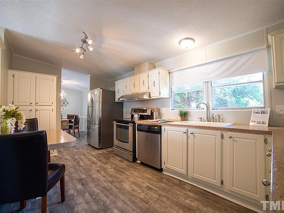 Rare find! BEAUTIFULLY remodeled ONE STORY home with a 2 STORY DETACHED GARAGE on 1.09 ACRE of land in a GREAT LOCATION! New carpet, new vinyl plank flooring, new appliances, new light fixtures, updated bathroom vanities, and more! Look out your kitchen window or sit on your 12x53 deck to enjoy a great open backyard with endless possibilities. The detached garage with walk-up storage room would also make a great man/woman cave! Convenient location with easy access to Chapel Hill, I-85, Duke & UNC.