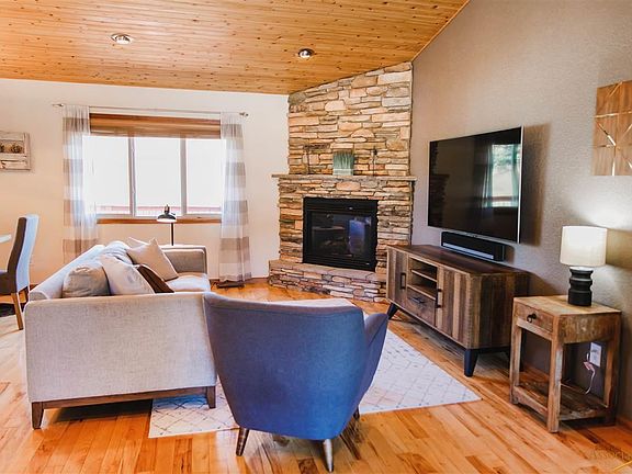 This absolutely stunning ranch style home has a fantastic layout and the outdoor space you dream of! A spacious entry leads to open concept living, dining and kitchen areas. Gather around the large island in a beautiful kitchen featuring hickory cabinets, stainless steel appliances, and granite counter tops. The hickory floors complement the rich plank ceiling and stone fireplace. The airy master features French doors accessing the outdoors. A large bathroom with heated floors and walk-in closet complete the space. Two additional bedrooms and a bathroom can also be found on the main level plus a laundry/mud room separated by a barn door. The basement holds another bedroom and bath, living area and impressive theater room with surround sound! On top of that, the outdoor space is spectacular. The newly enlarged deck has space for entertaining a crowd and the large yard backs to open space. Even the garage is heated. This home is sure to impress so schedule a showing today!