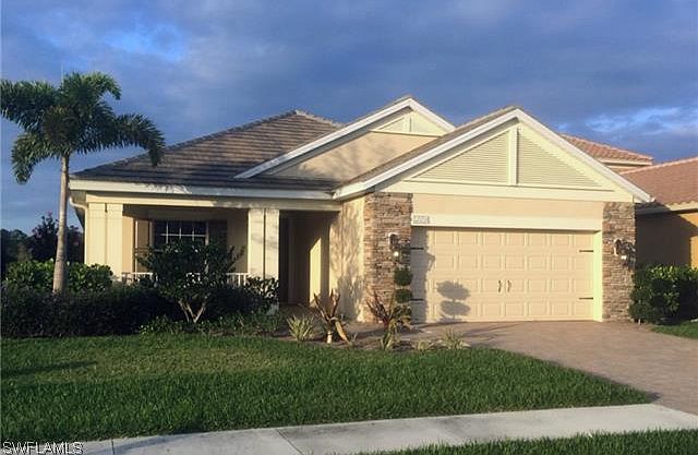 One of our most popular floor plans, the Starlight, all on one floor with tile in the living area, nicely appointed upgrades and a spectacular water view with the fountain that is illuminated at night. Enjoy swimming in your private pool just outside your great room. This home has 3 BR, a den and 2 1/2 baths. Completion is set for May-June. Picture is not of this home.