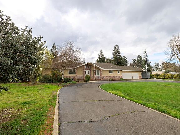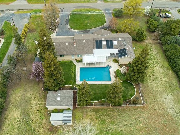 Country living at its best on this beautifully maintained 3 acre Ranchette. Formal entry with vaulted ceilings and hardwood floors. Large family room with vaulted ceilings, rustic brick fireplace, built in book shelves and lots of natural light. Separate formal living/dining area. Kitchen has been updated with newer appliances, Corian countertops and features a breakfast bar and dining area with a built in hutch. Indoor laundry room with sink and lots of storage. Master suite has double sinks, walk in closet and separate vanity area. French doors in the Master bedroom, Family room and off the formal entry lead to the large covered composite deck, solar heated pool and beautifully landscaped yard designed perfectly for entertaining. Property has 2-3 Orange trees, 1 Grapefruit tree and approximately 20 Almond trees. The 3 car attached garage , covered RV parking, 2 storage sheds and a 16x24 Tuff Shed with a roll up door offers lots of room for your gardening tools and all the big toys.