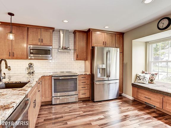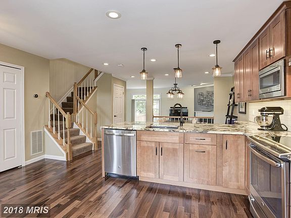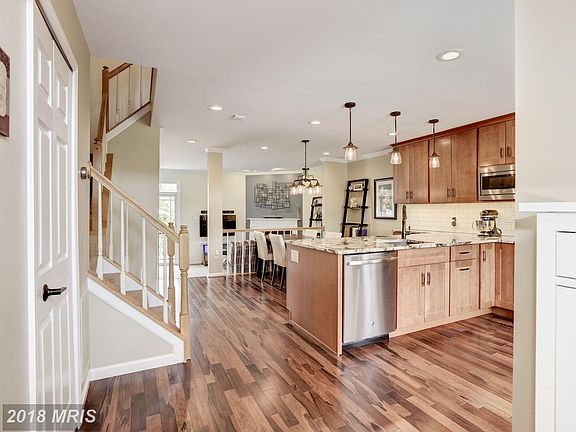 Stunning townhome featuring Nest thermostat, Ring doorbell, smart switches, recessed & pendant lighting, wood burning fireplace, & crown molding. KIT boasts a window seat, 42" cabs, subway tile backsplash, SS appls, & granite counters. MBD suite w/double dr cl. LL family room w/movie screen and projector, new carpet, & storage. Rear deck & landscaped grounds. Close to I-695, I-95, US-1, &I-895.