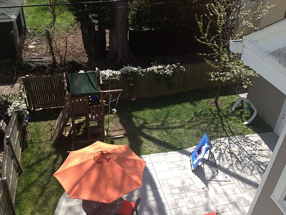 Vintage 1920's Center Hall, Shingle Colonial. Expansive 5 Bedroom, 4.5 Bath home on charming azalea lined street. 28 ft. living room features french doors leading to lovely side porch and back yard with patio. Finished basement rec room with wet bar. Attic features 5th bedroom/bath and large playroom/living room leading out to 3rd floor deck . High ceilings, Large windows overlooking trees, warm hardwoods. Porches, decks, and 1 Car detached Garage. Beautiful Home!