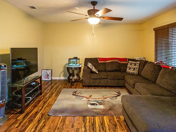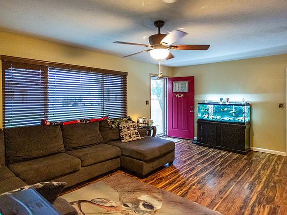 This updated 3 bedroom, 2 bath home is move in ready for your family! Complete with a fenced in back yard and shed for extra storage! The flooring is a gorgeous wood grain laminate found throughout most of the house, it pairs beautifully with the cabinets in the kitchen. The bathrooms have also been updated; the guest bath shower features stone walls with pebble flooring while the tub surround in the master bath is a clean white and grey marbled look- both very classy and beautiful. The spacious family room has a large opening to the formal dining. In the dining you'll love the sliding glass doors that overlook the private back yard. You'll find this property in a great neighborhood just north of town!