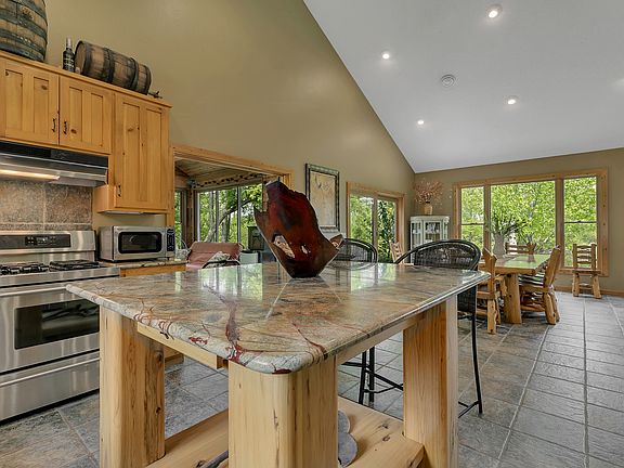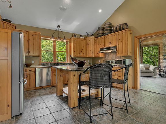 Among the quiet countryside and the mighty Mississippi, you'll find peace and serenity in this custom-built patio home. Home sits on 5 acres with large pond and an abundance of wildlife. Open living/kitchen/dining area with soaring vaulted ceilings and large picture windows. Living area offers custom stone fireplace and built-ins. Kitchen features upscale appliances including gas cooktop and beautifully crafted granite countertops. Main level bedroom/office with large walk-in closet and built-ins and main level 3/4 bath including shower just steps from your mudroom. Upper level offers open loft with study nook, 2nd guest bedroom and private master. Suite features full bathroom with jetted tub. Roll out of bed and enjoy a cup of coffee on your private balcony. Cozy 4-season porch with stone fireplace and access to the large private patio. Property offers trails, 800 feet of Mississippi frontage, over 18 miles of boat-able water, private sandbars, and access to Little Rock Lake.