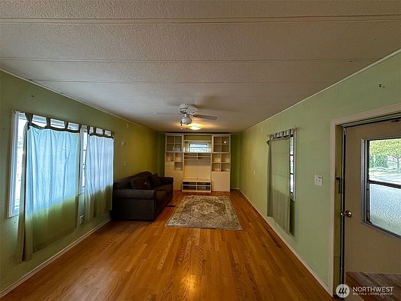 Single-wide in a quiet 55+ mobile home park, conveniently located off of Pine Rd in east Bremerton. Freshly cleaned and move-in ready. Covered front porch and a small back yard. Like-new W/D combo. Covered carport for 1 car as well as 2 small storage sheds. Community center on premises and Park pays for garbage. Home is priced to sell. Buyer must get park approval to purchase.