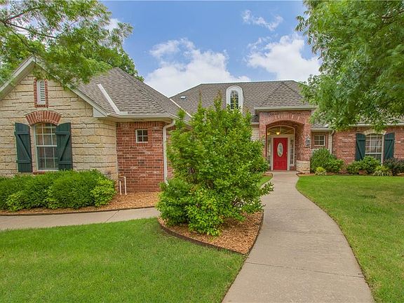 Welcome to the Steeplechase Edmond community. This home is located just north of Coffee Creek off Coltrane in the Edmond Memorial, Centennial and Central MS school district. The community itself features a pretty entrance with water feature, neighborhood pool and walking areas. This one owner home has been well taken care of. Four spacious bedrooms all with access to a full bath. This is a split bedroom floor plan and two bedrooms on each side of the home, one is currently being used as a study. The master bedroom is quite spacious, with master bath with two sinks, separate tub and tile shower. A formal dining area and flex living room, as well as a family room off the kitchen with fireplace. The kitchen features solid surface countertops, built in range, oven and microwave. The home has just freshly been painted inside & out, has plantation shutters, & new guttering. The HVAC system is 3 years young. This home is a great home giving wonderful curb appeal, location and size.