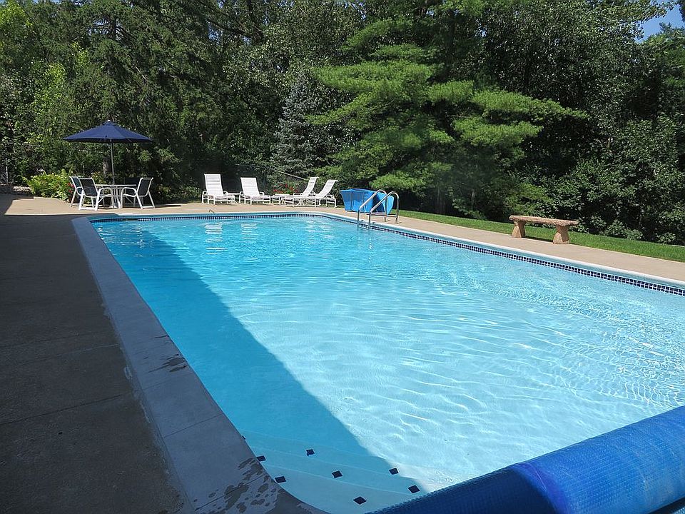 Brick ranch South of Grand w/wooded back yard, 20 X 40 in ground pool, & lots of yard for play! 4 bedrooms, newer windows, roof, furnace, air, and 3 baths. 3500 sq ft of many extras including underground irrigation, heated garage, & refinished hardwood flooring. 3 fireplaces, abundant built in storage, & large refinished lower level. Radon mitigation complete. Family that lives there kicks a$$!
