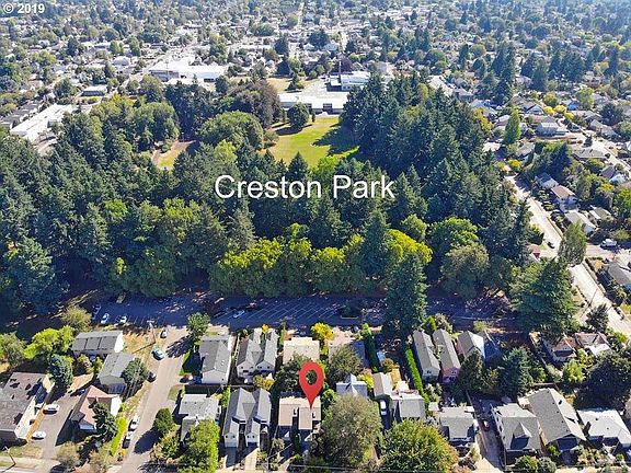Close in 3 bedroom townhome blocks from wooded Creston Park. Conveniently located to busline, eateries, shopping & downtown. Vaulted entry w/ skylight, living room, wood burning fireplace & kitchen nook area w/ slider out to backyard & stone patio. Spacious bedrooms & master is 18 x 11 w/ sitting area. Home was originally a 2 bedroom with an attached garage & now has a partial conversion. Third bedroom was permitted. Newer sewer line.
