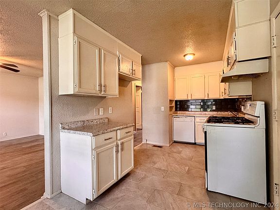 Move in Ready 3 bedroom home in Red Fork backing up to greenbelt! This property features many updates, with new LVP flooring, new paint throughout, new roof Nov. 2021, and new hot water heater in April 2024. Kitchen features painted cabinets, and bathroom has been updated with new vanity, tile flooring and updated tub & shower. This property makes a great move-in ready home for any buyer!