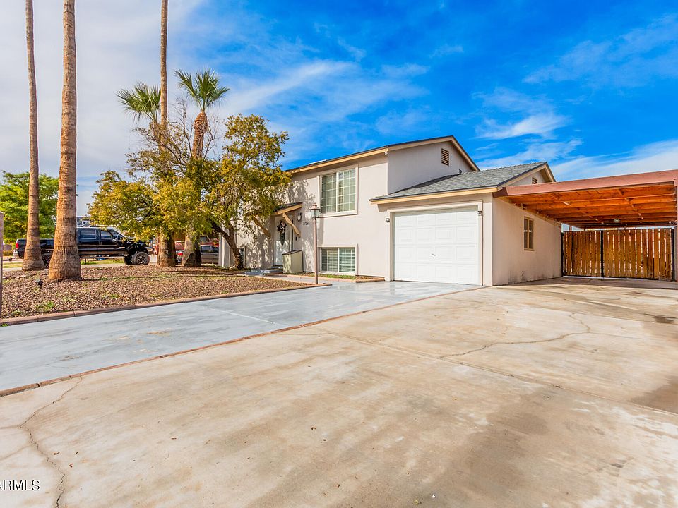 Welcome home! Family friendly 4-bedroom in Phx. Extended driveway and RV gate, impressive interior showcasing glossy wood-look floors, soothing color palette, and recessed LED lighting. Well-appointed kitchen boasts custom wood cabinetry adorned with crown moulding, granite countertops, and tile backsplash. Great Room off the kitchen and multipurpose room downstairs. Primary bedroom offers a private bathroom, walk-in closet, and direct access to the backyard via a lovely deck. Host memorable gatherings in the spacious backyard which includes a pergola, built-in BBQ, and gorgeous diving pool! The owner has put in lots of work making backyard into a relaxing oasis. What's not to like? This value won't disappoint! Walking distance to schools, close to ASU West and I-17 freeway.