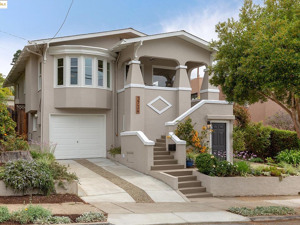 Lovingly maintained by the same owners for 22 years, this thoughtfully updated 4-bedroom, 2-bath home blends vintage character with modern comfort. The main level features a dining room with a beautiful original built-in and five-window bay, a living room with wall-to-wall built-ins flanking the fireplace, and inlay-detailed hardwood floors. The kitchen and bonus dining area open to a lush, flat backyard with mature fruit trees and plenty of space to dine, lounge, and play. A sunny bedroom and vintage full bath with hex tile complete this level. Downstairs offers three large bedrooms, including a versatile suite with original embossed-tile fireplace, laundry room, exterior entry, and interior garage access—perfect for a home office, guest quarters, or rental potential. Two bedrooms share a whimsical tunnel closet; one features a custom princess loft. A full bath remodeled in 2022 adds modern style while honoring the home’s vintage charm. With a newly paved driveway, one-car garage, and central location just blocks from Laurel District favorites—World Ground Coffee, Sequoia Diner, Degrees Plato Taproom, Farmer Joe’s, and more—you’ll love the easy access to both SF and the South Bay, plus weekend escapes to Redwood Regional Park for hiking, biking, and riding.