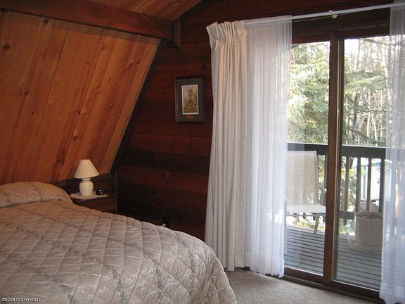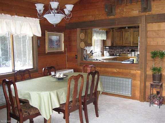 CHARMING ALASKAN HOME. Cozy, 3 level home on 4.78 acres near river access. 3 bed +2 'extra' rooms, 3 baths, large family room, reloading room, pantry & den loft area. Spacious & open living/dining areas w/soaring cathedral ceilings & windows galore. Birch trees, circle drive & lots of parking. Updates in 2008: $20K+ new roofs, carpet, linoleum, SS appliances, light fixtures & 2 bathrooms.