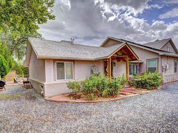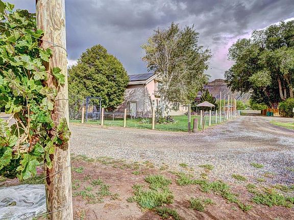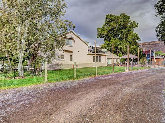 Tucked away between neighboring vineyards, is one of Palisade's best kept secrets. This remarkable home has been meticulously remodeled with amazing additions that make it better than brand new, including newly installed solar panels. The bright and airy floor plan showcases four bedrooms, vaulted ceilings and appealing design ideal for entertaining. On the main level, you’ll find two well-appointed bedrooms connected by an adjoining bathroom and unique loft spaces. The heart of the home is the open kitchen and living area, designed with style and functionality in mind. The kitchen showcases elegant cabinetry, an induction cooktop, a double oven, and generous space at both the eat-in dining area and island bar. Adjacent to the kitchen and living room is the Primary Suite and ensuite. This room is truly beautiful and the ensuite is built for relaxation, featuring a walk in shower with dual-showerheads and a jetted soaking tub. The expansive walk in closet with custom built-ins ensure ample storage and organization. Down the hall from the Primary Suite is a guest bathroom with a striking copper shower that further enhances the upgrades and over all appeal. This next part of the home is the entertainment hub, with a crafted bar and original materials from the original outbuildings and 1920's homestead, it truly makes you wonder if you are still in your home, or stepping in a tavern. Upstairs is an added bonus room that is the perfect home theater room and guest bedroom, with views of the Grand Mesa, it could also make a great home office. Just outside the bar, is your comfortable outdoor entertaining area, complete with a fire pit, pergola and mature yard. Parking will not be an issue with an oversized two car garage, and a 0.27 acre lot. This also has protentional for conversion to a separate additional dwelling unit (ADU). Located just a short stroll from the Riverbend Park and Palisade High School, this property presents an exceptional opportunity for those seeking the charm of Palisade living.