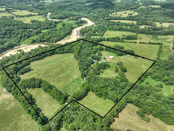 It's ALL about the LOCATION! LOCATION! LOCATION! and this Location speaks volumes! 36.5 acres hilltop acres NEAR Big Sugar Creek, fenced and crossed fenced, with 1531 sf house, 2 barns, loafing shed and hay shed. House up on the hill has great views of sunrises and sunsets. This is the PERFECT HOBBY FARM! Newer barn has 4 horse stalls, acreage is divided into 4 grazing pastures. The house features newer windows, it is well maintained, bright and cheery, with two living areas, two bedrooms, 2 full baths, large eat-in kitchen and spacious wrap around deck. Big Sugar public access is close by for Creeking fun!
