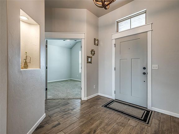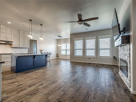 Seller accepting back up offers. Like-new, w/upgrades you will love!! This house has a 7 person tornado shelter, sprinkler system, front porch guttering, window coverings & well developed landscaping. The grey/white color palette throughout compliments the natural light that floods in. You will love cooking in the beautiful modern kitchen overlooking the spacious living room. With lighting & the fireplace controlled by remote, you will love the ease you will have living here. There is privacy & space for all in this split floor plan. The study & main bedroom suite are on one side of the house, & two bedrooms & full bath are off the hall across the home. Enjoy the large utility space, built-in mud bench & custom coffee bar. Relax on the front porch & enjoy the view of Songbird Park. Stop & smell the roses in the front flower bed, & harvest your own veggies from the garden boxes in the backyard-ready for your personal touch! *2 mounted TVs & Fridge to stay, W/D negotiable.