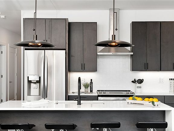 Only 3 left & this one has the most desirable layout with floor to ceiling walls of windows wrapping the unit in. Located on the “suburban” side of the building you’ll be away from the Butler Street excitement with green trees as your view. This all electric unit has in unit laundry making that task a simple one. The primary suite has a stunning en-suite bathroom with a sick shower. Solid surface flooring throughout keeps it maintenance free. Plenty of room at the peninsula over hang for stools. Open up the French window doors to the Juliet balcony for loads of fresh air & the wafting smell of Piccolo Forno's homemade Italian food! After dinner walk right around the corner to Millie’s Ice Cream & tell them I sent ya, they know me well. Time to work that off so off to the second floor we go to the gym for some cardio followed by grabbing a chilled glass of wine out of your very own refrigerated wine locker to watch the Sun set over dahntahn on the rooftop deck!