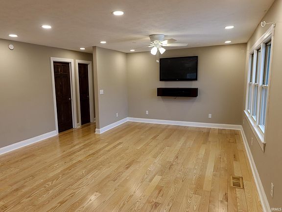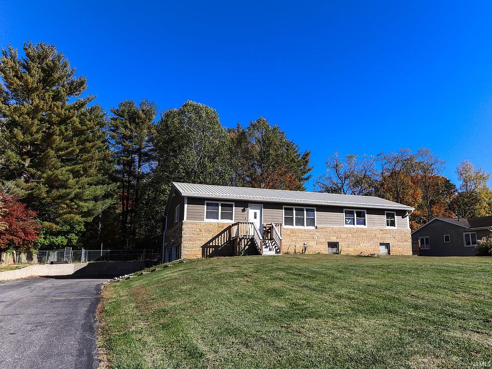 Situated on a lovely half-acre lot with a scenic wooded backdrop, this raised ranch home in Vinton Woods, located on the southeast side of Bloomington, has a level rear yard enclosed by a chain link fence (the playset and trampoline are included). Recently renovated, this residence boasts 4 bedrooms and 2 full bathrooms, all conveniently located on the main floor, while the basement is unfinished (finishing the basement of over 900 square feet would make the living area over 2,600 square feet, the basement is already roughed-in for a full bath). Notable recent upgrades consist of hardwood flooring throughout the main level, stylish new tile in the bathrooms, an impressive kitchen remodel—complete with solid surface countertops, stainless-steel appliances, a farm sink in the island, and plentiful soft-close cabinets and drawers, a brand-new full bathroom, a 2-year-old metal roof, and modern can lighting in both the kitchen and living room, a newly updated furnace and 200 amp. electrical panel. The extra large asphalt driveway (approximately 2,900 square feet) has recently been sealed, and at the back of the house, you'll find a screened-in porch. The spacious 2+ car garage is approximately 725 square feet (29’ x 25’) and features two overhead doors as well as an extra side door for convenient access. The schools serving this area are Rogers/Binford-Jackson Creek-Bloomington South. This charming home is nestled within a pleasant subdivision just minutes away from College Mall, Indiana University, and downtown Bloomington.