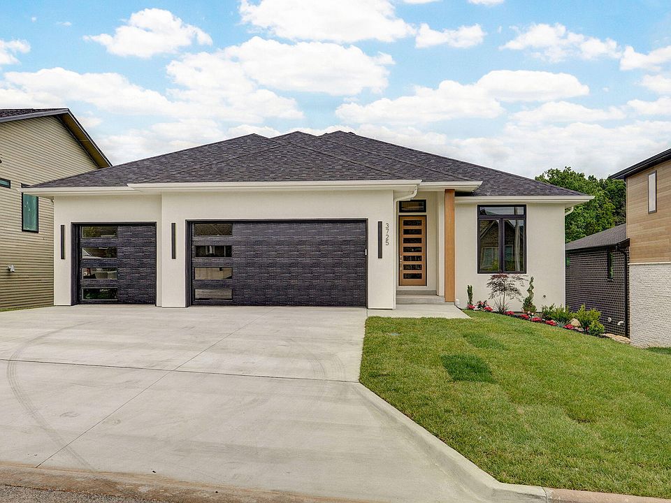 Modern elegance meets comfort, style, and thoughtful design in this custom-built home nestled within a gated community on Springfield's east side. Offering five spacious bedrooms and four well-appointed bathrooms, this residence is perfect for families or those who love to entertain. Step into the open floor plan and immediately notice the high ceilings and detailed craftsmanship that set the tone for everything to come. The heart of the home is a stunning gourmet kitchen featuring quartz countertops, a large island, sleek stainless steel appliances, and custom cabinetry all lit beautifully by designer lighting and finished with elegant hardware and faucets. The living room is warm and inviting with a stylish fireplace framed by custom-built cabinets and wood paneling. Retreat to the primary bedroom for a bit of everyday luxury, complete with a walk-in closet, dual sink vanity, walk-in tiled shower, and a freestanding soaking tub that practically sings relaxation. Downstairs, the walkout basement is built for entertaining, wet bar included making it ideal for movie nights, game days, or just unwinding. Gorgeous engineered hardwood flooring flows throughout the main spaces, bringing warmth and sophistication. Step outside to enjoy a large covered deck, perfect for hosting or simply relaxing. The beautifully landscaped front and back yards are ready for your green thumb... or at least your deck chair. Located with easy access to shopping and dining, this home brings both convenience and charm in equal measure. It's not just a house; it's a home. And don't miss the epoxy-finished garage floor, because even your car deserves a polished touch.