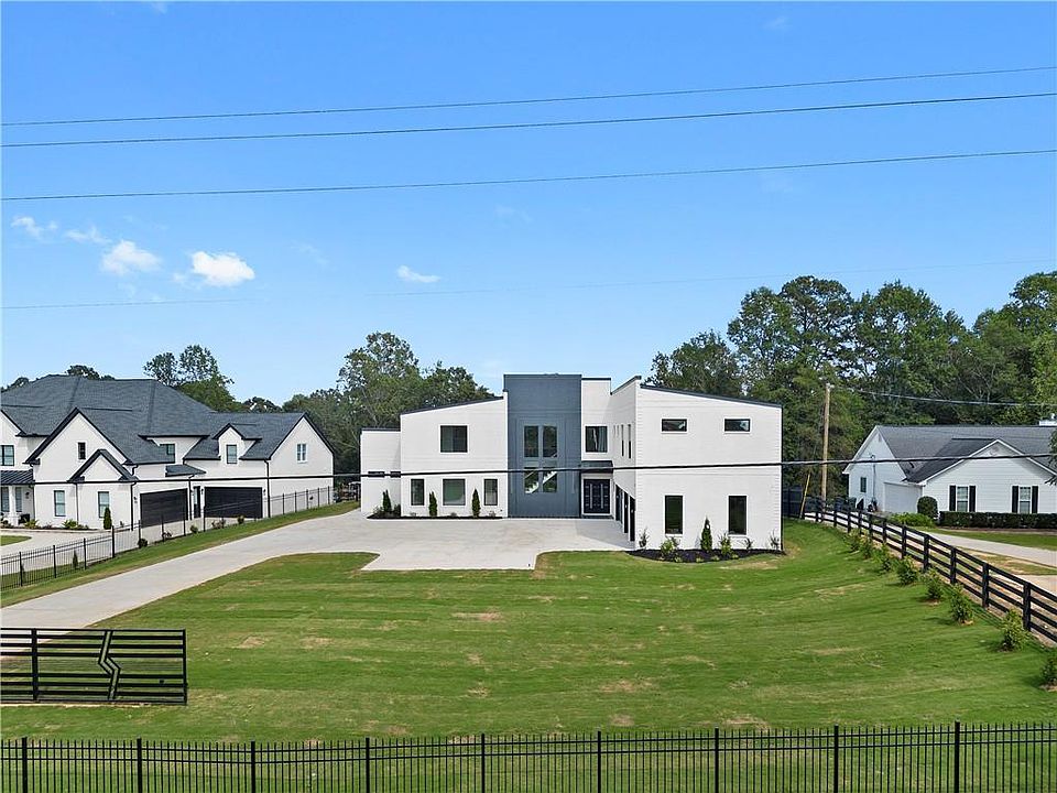 Introducing a well-appointed stunning new construction modern home. Imagine pulling into your private gated modern oasis that has white-washed brick exterior, a perfectly manicured lawn, black trim, and a view of your modern staircase from the oversized window. You have found the perfect modern estate. Welcome to a contemporary masterpiece nestled on a spacious lot, showcasing the epitome of modern luxury. This magnificent property offers an abundance of living space, featuring 5 spacious bedrooms, 5 full bathrooms, and 2 half bathrooms. With meticulous attention to detail and an array of high-end finishes, this home truly redefines modern living. As you enter through the impressive 20-foot ceiling foyer and great room, the remaining ceiling heights reach 10.5 feet, you'll be captivated by the grandeur and sophistication that surrounds you. The main level conveniently houses the owner's suite, ensuring privacy and convenience. Retreat to the primary bedroom suite, complete with an oversized closet designed to accommodate your wardrobe. The en-suite bathroom exudes opulence, featuring his and her sinks and a stand-alone tub set against the backdrop of floor-to-ceiling tile. Working from home or taking care of business matters is a pleasure in the well-appointed office located on the main level. Additionally, a bedroom situated near the kitchen offers flexible options for guests and family. Upstairs, discover four more bedrooms, each providing privacy and comfort, including a second bedroom with its own en-suite bathroom. The interior of this home is adorned with beautiful white oak flooring, adding elegance to the open floor plan. The 2-story great room with a catwalk, complemented by a striking fireplace and a wall of windows, creates an inviting and airy atmosphere. With high ceilings throughout the main level, every corner exudes a sense of modernity. Thoughtful design extends to every aspect of this home. The spacious mudroom, conveniently located off the 4-car garage, offers custom built-ins for organized storage. Additional highlights include stylish half bathrooms strategically placed throughout the property for added convenience. Step outside and enjoy your gas fireplace designed under a covered patio and a backyard expansive enough to add a pool. The construction of this remarkable home is estimated to be completed in just 90 days, allowing you to experience the joys of a brand-new home without the wait. Located within a sought-after above-average school system, including the award-winning Mill Creek High School, this residence provides an ideal setting for families. Situated less than 5 minutes from Bogans Park, where you can enjoy multiple swimming pools, a well-equipped gym, and a dance studio, this home offers endless entertainment options. Furthermore, it is just a short drive from renowned destinations such as the Mall of Georgia, Chateau Elan, Top Golf, and Atlanta, ensuring a convenient and fulfilling lifestyle. Please note that this home is an active construction site. Visitors are advised to enter at their own risk, and hard hats will be available onsite. Don't miss out on the opportunity to own this exquisite modern home. Embrace luxury, comfort, and contemporary living by making this extraordinary property your own. Contact us today to schedule a private tour and embark on a journey to your dream home. Work with our preferred Lender, Toshia Parrish with Assertive Mortgage for her comprehensive new One-page Bank Statment Entreprenuer Loan Program and our preferred closing attorney The Hawes Law Firm LLC for a $5,000 incentive towards your closing cost.