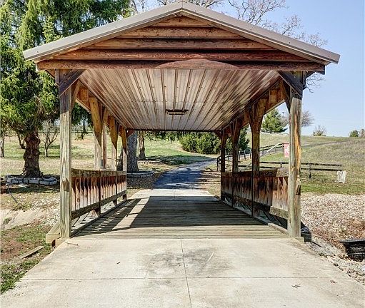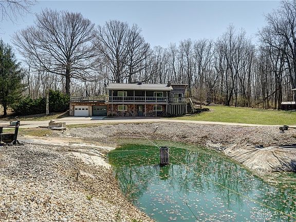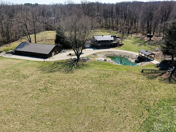 As you drive off Hi -Wind down the drive and over the bridge you will be in awe of the Log and stone home overlooking your 6.5 acres of land and pond. Owner added a sunroom and Vinyl replacement windows. Large room in lower level can be used as a 3rd bedroom or a family room, bath on each floor. 50 X 80 barn was built as a horse barn, owner removed the stalls and added garage doors for additional garage space. (Could be converted back to horse barn) Barn has an efficiency apartment which currently rents for $450 per month. Pond has a small leak, owner adds water if needed. Beautiful all year round. If you like nature and privacy you will love this property. Living room has a corn stove insert.