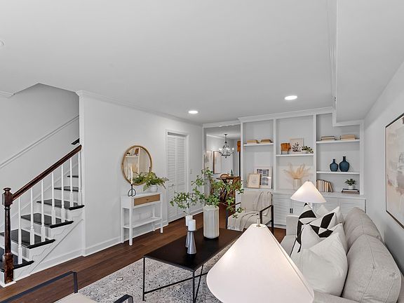 Beautifully updated, stately brick end unit, located in quintessential and charming Georgetown North--with the conveniences of ITB living and a stone's throw from North Hills shopping! This stylish condo lives like a townhome and ftrs new flooring throughout first floor. Dapper details include: new fixtures, crown molding, built-in cabinets & bookcases, + built-in dry bar/additional cabinetry in dining. Chic white kitchen, stainless steel appliances, quartz countertops, and tile backsplash to the ceiling. The second story hosts three bedrooms with stunning parquet flooring and a tastefully renovated full bath. Venture to the back patio to enjoy a relaxing respite on perfect spring night. Pool season is around this adorable home has you covered with the community pool! Convenient and comfortable, in the heart of shopping, dining & entertainment! HOA covers gas, water, sewer, trash, pool, and MORE! Easy access to 440!