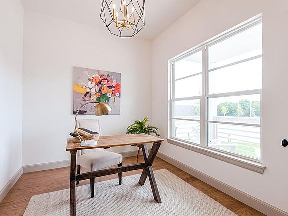 This move-in ready Craftsman home is located in our highly sought-after community, Town Square! This adorable two-story home has a study, deluxe master retreat, two upstairs spare bedrooms, 2.5 bathrooms, a loft, and a bonus room. You will love the master retreat with its double vanity, freestanding tub, oversized shower, and large walk-in closet. The open layout of the Austen plan from the kitchen to the dining to the great room allows for ease when entertaining guests. The Austen is the perfect family home to allow the kiddos to have their own space upstairs with their bedrooms, bathroom, and bonus room spaces all on the 2nd floor. Town Square is Edmond's historically inspired community featuring a greenbelt, fishing pond, playground, and much more. Town Square Residents Club has a clubhouse, resort-style pool, and a state-of-the-art fitness center! Model home at 1616 Boathouse Road, open 7 days a week.