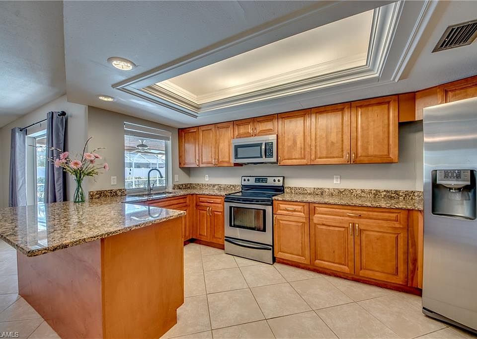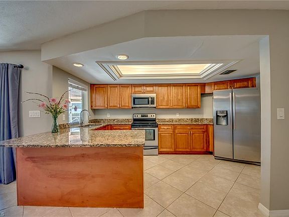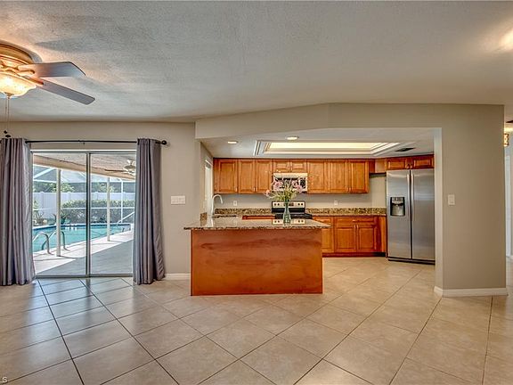 MULTIPLE OFFERS, HIGHEST & BEST DUE BY SUNDAY 9/22 12 NOON! This is a lovely FOUR bedroom POOL home with UPDATED kitchen, UPDATED master bathroom and UPDATED guest bathroom and ALL ASSESSMENTS PAID! Split bedroom floorplan with large master closet, raised panel wood vanity & granite plus updated shower. Guest bathroom is a pool bath. Bring your pool table or piano as you'll have plenty of room for both with the large living room & separate family room. The roof was new in 2010 new flat roof 2019 and brand new AC 2019. New PVC privacy fence for safety of children & pets. This home is move in ready & perfect for year round use or seasonal enjoyment. City water & sewer assessments PAID! The large sparkling swimming pool has a two year new pool pump. Pool is in need of resurfacing and seller will include a $5000 resurfacing credit with acceptable offer. The lanai is the full length of the home & has a generous under cover sitting area PLUS a large sun deck. The garage is oversized with 546 square feet. This is a beautiful location of nice homes & a large fenced back yard for privacy. Perfectly centered between Veterans Pkwy & Cape Coral Pkwy extremely convenient location. Hurry!