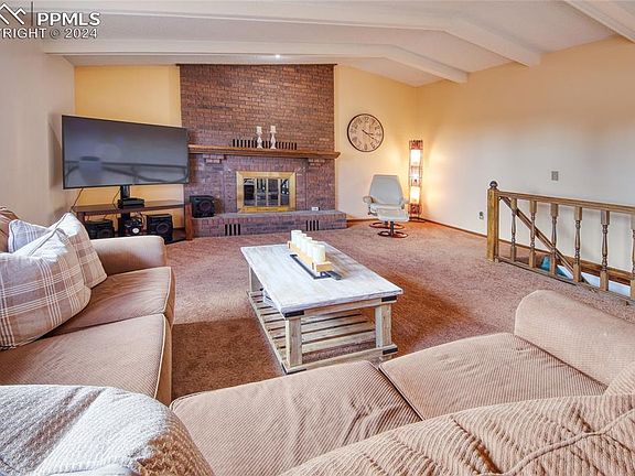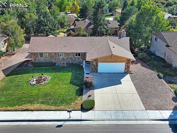 Welcome to this well maintained 4-bedroom, 3-bathroom Ranch Style home with 2-car garage on a 12,150 SF Lot! The open design floorplan is ideal for entertaining and features a spacious great room with vaulted beamed ceiling and stone surround gas fireplace. Dining area adjoins the great room with access to a large, composite deck, perfect for entertaining. You will love the kitchen which provides ample space for culinary creations and features plenty of cabinets as well as a breakfast bar. The main level also includes the master bedroom with en suite bathroom, additional bedroom, and full bathroom. The walk out basement is designed for recreation and relaxation, featuring a large rec room with a wood burning fireplace insert, perfect for cozy gatherings or game night and a wet bar/kitchen area. It also includes a full bathroom and two additional bedrooms, and laundry area. Enjoy the low maintenance stucco and stone exterior and beautifully landscaped front and back yard with plenty of room for outdoor enjoyment. Don't miss the opportunity to own this well-appointed home in the sought-after Sunset Mesa location. You have access to the Norwood Pool & Tennis Courts that are covered in your affordable HOA dues. This quiet neighborhood has easy access to Military Bases, I-25, shopping, and dining. Experience the convenience of nearby amenities and the pleasure of natural attractions and outdoor enjoyment in the Sunset Mesa open space and trails. Schedule a showing today and make this beautiful property your new home!