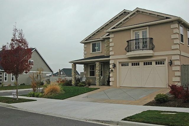 Beautifully crafted stucco 2-story by Mahar Brothers Construction in 2006. Exterior stone accents plus wrought-iron balcony above garage. Large covered front porch entry w/railing. Spacious corner lot w/open field behind fenced backyard. Gleaming honey-maple stained oak flooring. Formal living room has coffered ceiling. Family room w/gas fireplace & is open to kitchen & dining area. Kitchen features attractive cabinetry, under-counter lighting, granite counters, stainless steel appliances & eating bar plus nook. Special touches include crown molding, chair rail detail, arched doorways, plantation style wood blinds & bricked accent wall in dining room. Master suite offers coffered ceiling, walk-in closet, corner jetted tub, separate tiled shower, double sink vanity & tile flooring. Laundry room has extra storage folding counter & sink. 4th bedrooms can serve has large bonus room, office space, etc. Covered back patio, large backyard. Stamped concrete driveway.