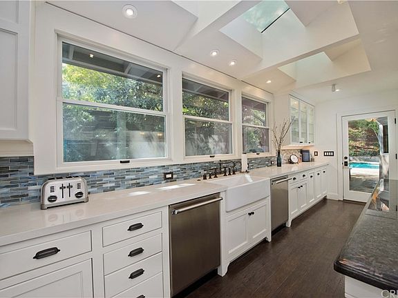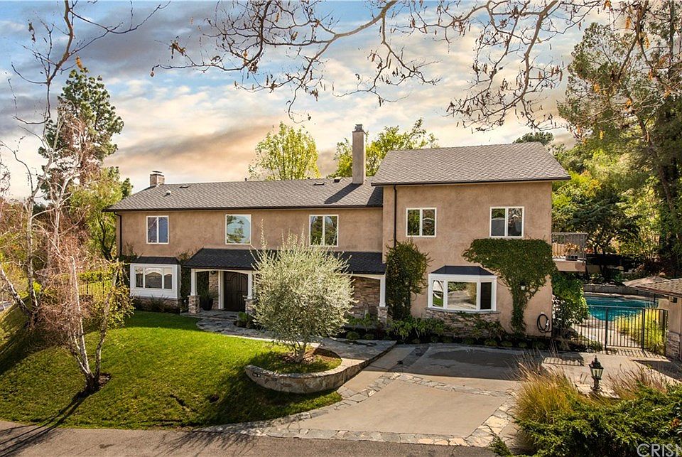 On very rare occasions does a home come available that warms your heart, soothes your senses & exudes such absolute perfection! Perched above the street up a private drive sits this magnificent and beautifully remodeled residence. Highlighted with gleaming wood floors, grand living spaces, contemporary finishes & luxurious designer touches throughout! Adorned with a stunning family styled kitchen outfitted with top-of-the line stainless appliances, walk-in pantry, loads of custom cabinetry, wine refrigeration, dual islands & built-in bkfst dining. Separate formal dining area & expansive living room anchored by its central fireplace & picture windows to take in the stunning views. Alternatively stretch out and relax in the generously appointed family/media room w/direct rear yard access & plenty of space for extended family lounging! Encompassing five spacious bedrooms, incl downstairs suite & sensational upstairs master w/library retreat, romantic fireplace, voluminous vaulted ceilings, pvt patio balcony, custom walk-in closet and spectacular spa styled bath luxuriously outfitted with jetted tub, seamless glass steam shower, dual sink vanities & dressing area. Relax in the ultra-private entertainers yard that seamlessly wraps around almost the entire property, highlighted w/sparkling pool/spa, patio retreat w/retractable awning & built-in BBQ bar, along w/separate pergola lounge surrounded by manicured grassy play area, mature landscape & sensational hillside/valley views!
