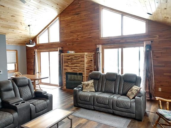 FEELY LAKE HOME - MERCER WI: Enjoy the pristine & totally private Feely Lake with this almost new custom 4-bedroom 3-bathroom home! This quality home's main level features cathedral ceilings with Basswood tongue & groove, Cherry accent walls, rustic Hickory cabinets, granite counter tops, master bedroom with bathroom, plank vinyl floors throughout, & lakeside deck. The fully finished walkout basement features a 2nd full kitchen with Birdseye Maple cabinets, a 2nd large great room, extra bedroom & full sauna for your relaxation. Additionally, this home features hydronic in floor zoned heating, air exchange system, on demand hot water, high speed internet, natural gas, water treatment system, half log siding & was built in 2020 & is in NEW CONDITION. This home has 8 different species of wood on its interior which were all locally harvested by the owners logging company! Schedule your private showing today for this quality home & property!