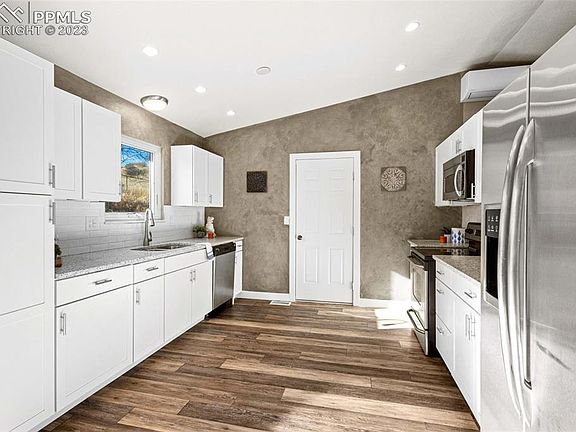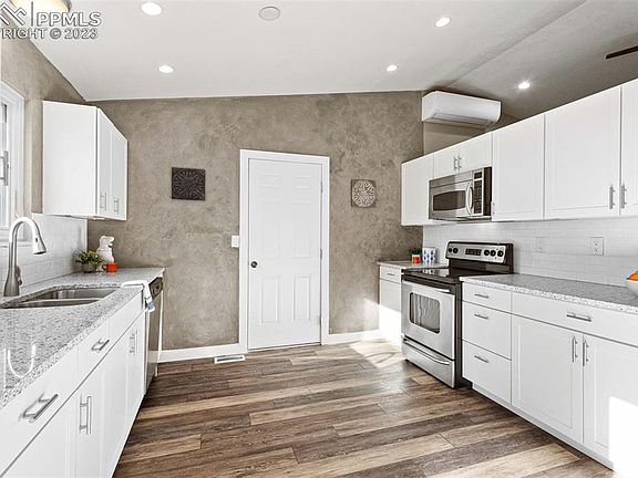 Welcome Home to this beautiful Westside Home in the wonderful neighborhood of Holland Park! This location is just steps from hiking trails, and allows easy access to Old Colorado City and Garden of the Gods. This home is at the end of a cul-de-sac, and has no neighbors behind, and has a huge lot that is over a half acre in size! The backyard is huge, and offers a raised section that has stunning views of Colorado Springs, as well as a Storage Shed. The home itself has been beautifully remodeled- to include new Luxury-Vinyl-Plank flooring, and a brand new Kitchen that includes new cabinets, stainless steel appliances, and granite countertops. The Upper Level has two spacious bedrooms, including an expanded potential Master Bedroom that offers dual closets and views of the private backyard. The Lower Level has a large Family Room with great natural light, including a gorgeous stone clad fireplace. The Lower Level also features a large Bedroom that has an attached large closet and full bathroom. The home has three beds and three bathrooms in all. The Finished Basement space is a great Game Room, and the pool table is included. This is a great property in a wonderful west side location! Welcome Home!