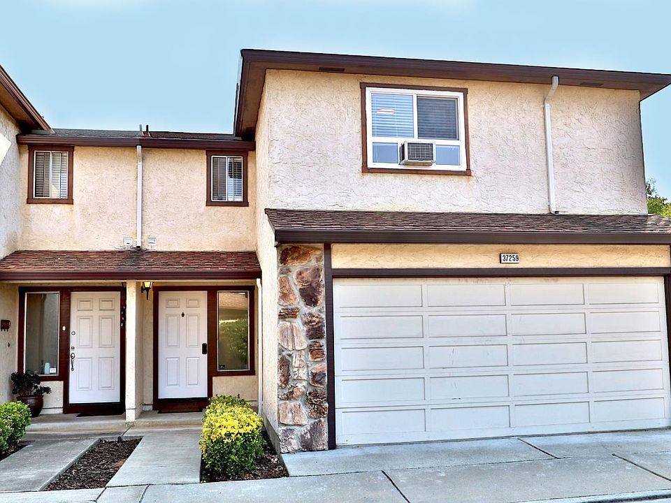 Best value in Fremont! DUET HOME ON CENTRAL CUL-DE-SAC ; Located along a private cul-de-sac, this duet townhome blends a functional layout with easy access to top attractions. Open living and dining areas connect to a kitchen with granite countertops. Upstairs await a large laundry center and three spacious bedrooms, including a peaceful master suite. Outdoors is a large, wraparound backyard with pergola and mature citrus tree. Enjoy a fireplace, brand-new appliances, gorgeous natural stone finishes, abundant storage throughout, and an attached two-car garage with workbench. Nearby are beautiful Quarry Lakes, shopping, dining, and fine schools. Commuters will be close to 84, 880, Amtrak, BART, and major companies like Tesla, Lam Research, Thermo Fisher, Facebook, and more. Very low HOA, average $150/month.