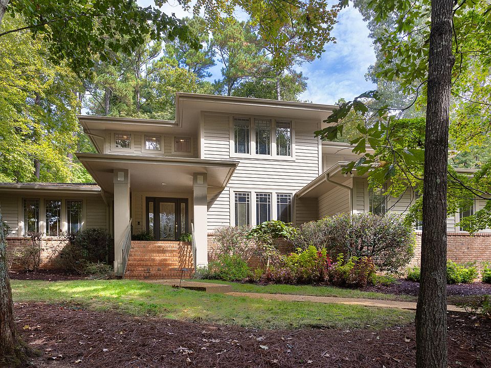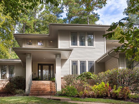 Sophistication meets functionality and serenity. Discover this gorgeous Jim Henry, prairie style home beautifully sited on 1.3 acres at the end of a quiet cul-de-sac in desirable Croasdaile Farms. Amazing possibilities arise in the flexible floor plan, with formal rooms and family and bonus spaces. Delight in the unexpected details of built in stained glass windows, interior stained glass sconces, multiple custom bookshelves, and exterior column front lights. Large open kitchen with breakfast nook connects to deck with gas hook-up and huge screened porch. Three car-bay attached garage. Deep eaves. Freshly painted inside and out. Come discover this remarkable property!