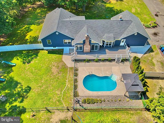 Welcome home! You will truly appreciate this stunning custom rancher situated on over 4 acres—perfect for horses, chickens, and goats, or perhaps building a huge garage for all your toys. This home exudes a true custom look and feel, complemented by top-quality landscaping featuring retaining walls, an in-ground pool, and a composite deck. The property offers pastures, a paddock, and a horse barn, along with a large concrete pad ready for another outbuilding. Upon entering through the front door, you are greeted by a tiled foyer that leads to a family room with cathedral ceilings, a brick fireplace, and large windows overlooking the composite deck and gorgeous swimming pool. The shabby chic kitchen cabinetry, granite countertops, and stainless steel appliances are accented by a rustic center island custom made from wood/epoxy. The half-barrel light fixture adds a charming touch. The master suite features a tasteful accent wall, two large closets, and a lavish bathroom with soaking tub and tiled shower. Most mechanicals have been recently updated, including the roof, HVAC system, instant hot water system, water softener and pressure tank, windows, and more. The 2 remaining bedrooms on the main floor are rather large and generously sized. From the exterior this home is deceiving because the finished basement adds an additional 1400 square feet of living space! Basement configured with a rec room, game room, play room and 2 large bedrooms with egress windows. Just come see for yourself, we all know this will not last long.