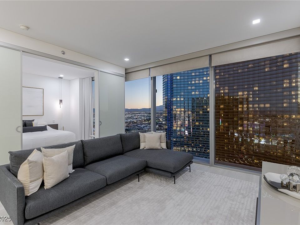 Introducing Veer Towers Unit 2902W - A meticulously remodeled high floor one bedroom condo with beautiful Aria and City views. - This complete remodel includes new 2x4 flooring, recessed lighting, modern fixtures, bathroom and shower, bedroom blackout blinds, and an added custom closet. Located in City Center, one of the most expensive developments in the United States, Veer Towers has complete amenities such as a 24 hour valet, concierge, pool and spa with Bellagio Fountain and Strip views, gym and lounge with city views, billiards room, business center, and is surrounded by World class dining, shopping, and entertainment. Convenient walkability to Las Vegas Boulevard (Strip) and walking distance to T-Mobile Arena where you can watch your favorite concerts, UFC events, NHL events, and more. Less than 10 minutes to the airport and central access to all of Las Vegas, NV.