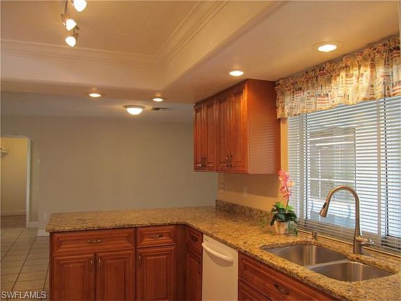 This Gulf access home has been beautifully updated! It has a HEATED pool and is located on an OVERSIZED lot. The widest part of the lot is all waterfront and it sits just off the canal intersection for a great wide-water view and just minutes to the River. The home is tiled throughout with 18" porcelain tile, new larger baseboards, wooden cabinetry in the kitchen with self-closing drawers and beautiful granite countertops. The kitchen also has a new dishwasher and faucet. Both bathrooms have been updated and include raised sinks (2 in master bath), granite countertops, white raised panel cabinetry on higher vanities, new faucets, comfort height toilets, and travertine tile in the shower/bath area. The Master bedroom has a slider to the lanai and pool area, along with a nice walk in closet. The pool is oversized and goes to a depth of 8 feet within the lanai. The laundry is inside and the home has raised panel interior doors. The lighting has also been updated in the kitchen and baths. Access to the pool/lanai area from the master bedroom, dining room, family room and pool bath. The dock has a 10,000 boat lift, and the yard has both mango and avocado trees. Enjoy the Florida life!