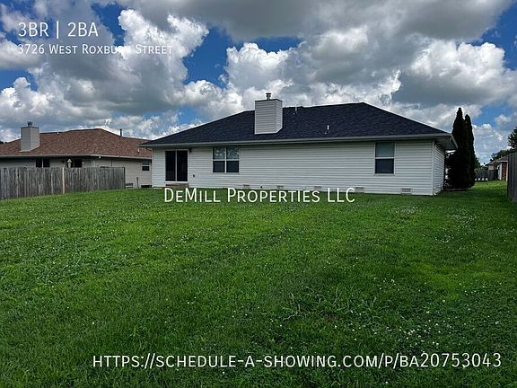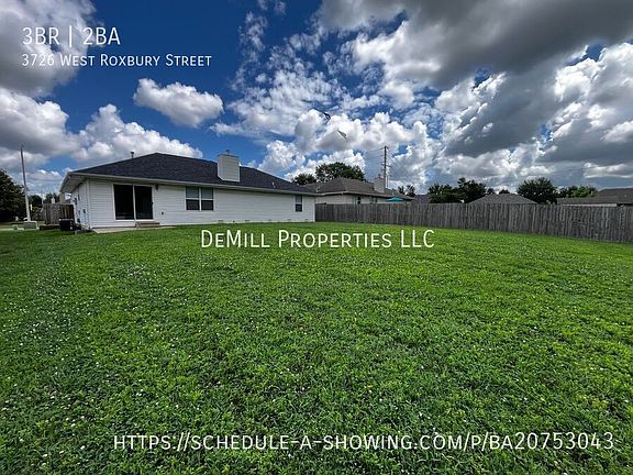 Welcome to 3726 West Roxbury Streetan inviting single-story gem located in a friendly, quiet neighborhood. Perfectly suited for anyone seeking comfortable, modern living in Springfield! Home Highlights: -Cozy Living Room with vaulted ceilings, a gas fireplace, and ample natural lightideal for relaxation and gatherings. -Spacious Master Suite with a walk-in closet and en-suite bathroom boasting a walk-in shower. -Two Additional Bedrooms offer versatility for guests, kids, or a home office. -Indoor Laundry Convenience with washer and dryer hookups located in a practical laundry area. -Attached Two-Car Garage ensures secure parking and extra storage space. Outdoor & Location Perks: Partially Fenced Backyard with a neat patiogreat for pets, playtime, or casual get-togethers. Prime Southwest Location just minutes to schools, dining, shopping, parks, and Hwy 65making daily errands and commutes a breeze.