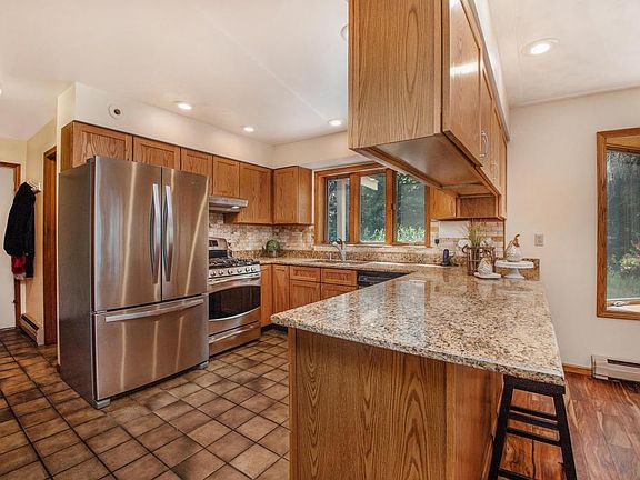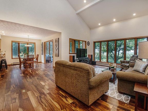 This custom built-contemporary style 4 bedroom/3.5 bathroom home is nothing short of a dream. The long and private driveway overlooking beautiful vineyards will leave you in awe. Entering the home, you are greeted with cathedral ceilings and floor to ceiling windows offering magnificent views of the valley. Remodeled in 2014, the kitchen features granite counters, stainless appliances, pantry space, and access to the heated 2+ car garage and main floor laundry. The spacious master suite includes a private bath with a walk-in shower, double vanity, and 17x8 walk-in closet. Space isn't an issue with 3 main floor bedrooms, a partially finished basement, and the 40x60 cemented pole barn. Spend your time relaxing on the lovely wooden deck or exploring the property's 50+/- acres.