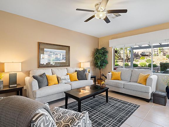 Great Room Cayman Model With 2 Bedrooms, 2 Baths And A Convertible Den. This Home Has Great Curb Appeal. The Kitchen Has A Breakfast Bar/Center Island Open To The Great Room. The Rear Yard Is An Entertainer's Delight With A 2-Level Patio, Extended Lower Patio With An Aluma Wood Patio Cover. The Interior Has Tile Floors In All The Right Areas.