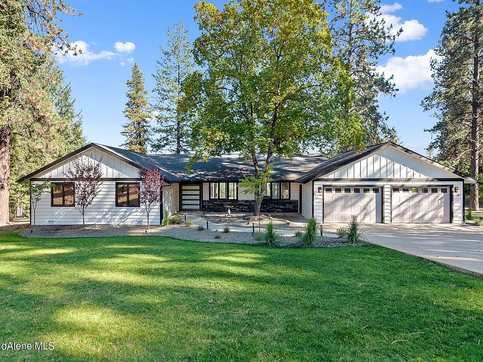 This charming newly renovated LAKEVIEW home is sitting on over 3 acres! You have the privacy and peacefulness with all the modern conveniences. This 4 bed/3 bath single-level features an open & inviting floor-plan with contemporary finishes. Chef's kitchen with quartz counter-tops, double ovens, gas cook-top, massive island and storage galore. Main suite retreat with spa-like bath and multiple living areas with floor-to-ceiling windows, abundant natural light and gorgeous mountain & Hayden Lake views. Over-sized 3-car garage plus a detached 28'x30' shop. Minutes from lake access, hiking trails, restaurants, Avondale Golf Club, Hayden Lake Country Club!