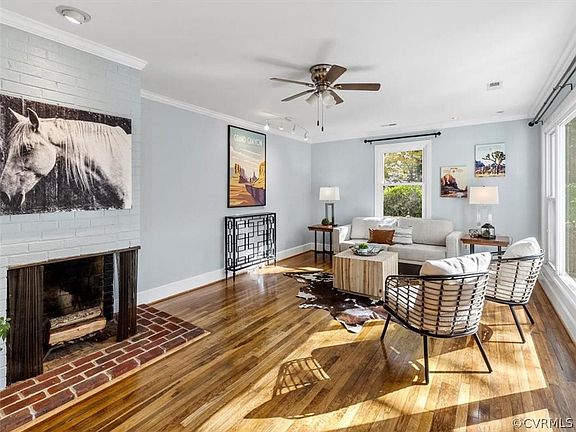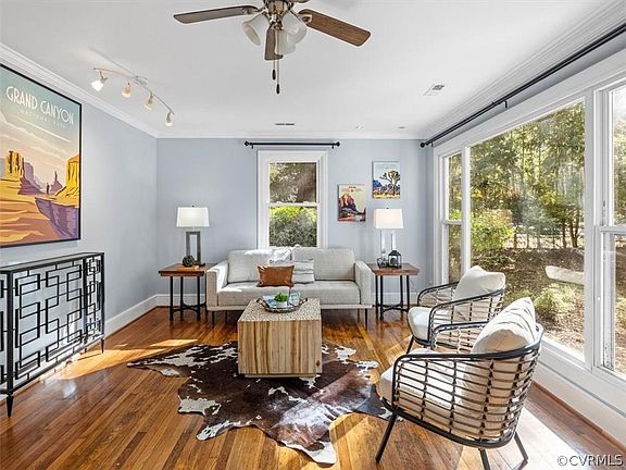 This adorable 3 bedroom/2 bath Stratford Hills ranch home is just a few blocks from Pony Pasture, James River Park, and Southampton Recreation Association. Owners carefully updated the home including a new kitchen and landscaping. With a large fenced yard on a private wooded lot you wont believe that you are just minutes to downtown, VCU, Short Pump, and Stony Point. Large sunny rooms greet you including a Living Room and Dining Room with picture windows, and an oversized Family Room - all with hardwood floors. The new kitchen features stylish grey high end cabinetry, sleek granite and tile backsplash, stainless steel appliances, a cozy eat-in area, and hardwood floors. The large primary bedroom has an updated en-suite bath and surprisingly large walk-in closet system. There are two more bedrooms with closets down the hall as well as another full bathroom between the kitchen and hallway area. The Family Room has a fireplace and sliding glass doors to the fenced back yard and patio. The triple wide driveway is large enough for six cars and could easily accomodate a camper! This charmer will not last!