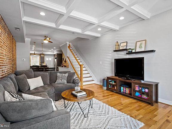 This terrific updated 13’ wide property with oversized parking pad and roof top deck is ideally located on a quiet street in the historic Brewer’s Hill neighborhood. The home boasts 1,890 sq. ft. of expansive urban living space on three levels. The property offers 3 full Bedrooms and 3 full Bathrooms, a desirable floor plan, eye-catching details, brick walls, 10’ ceilings, recessed lighting, multiple ceiling fans, handsome oak wood flooring, coffered ceilings, and detailed moldings and trim. Features on the main level consist of an open concept living/dining area, eye-catching brick walls, gourmet kitchen with wood cabinets, granite countertops, stainless steel appliances, gas cooking, and breakfast bar. The second level consists of the primary en-suite Bedroom and Bath with a large walk- in closet and imposing shower stall. There is a second bedroom and a hall bath with a tub/shower and a hallway linen closet. The Trex roof deck can be accessed from the hallway interior stairs on this level. The expansive 14’ X 31’ roof deck is a stand-out feature of the property providing great space for entertainment or relaxation and enjoying sweeping cityscape views and the historic Natty Boh icon. The third Bedroom and a full Bath are situated on the lower level along with the laundry/utility room, additional storage space, and a bonus room suitable for a den, office or exercise area, etc. There is easy access to the large parking pad in the rear. The home is located within proximity to Canton Crossing, Patterson Park, the waterfront, various water-oriented neighborhoods, Johns Hopkins and U of M campuses, universities, institutions, restaurants, bars, coffee shops, and major highways.