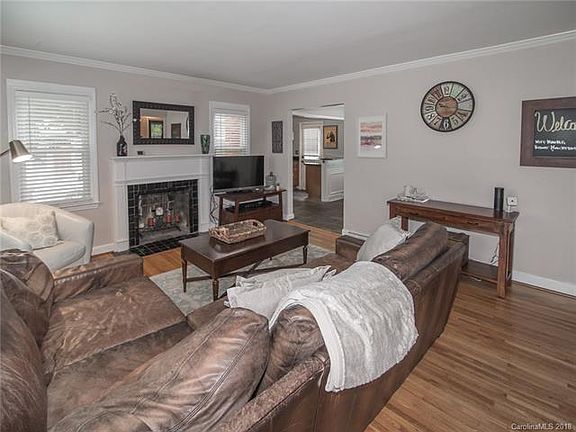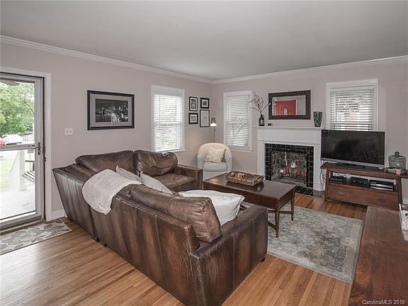 Adorable bungalow in popular Plaza Acres!! Original hardwoods, recently renovated hall bath, fresh paint throughout, new carpet in master, crown molding, upgraded door hardware and insulated windows. Front porch addition custom built in 2009. Large, flat and private fenced backyard with detached, finished building perfect for bonus room/ flex space, office etc. Roof replaced in 2012 (house and detached building). Plumbing in kitchen and baths updated 2013. Convenient location next to NoDa, Plaza Midwood, and Light Rail- Walkable to both 36th Street stop and Sugar Creek station. Wired for Google Fiber.