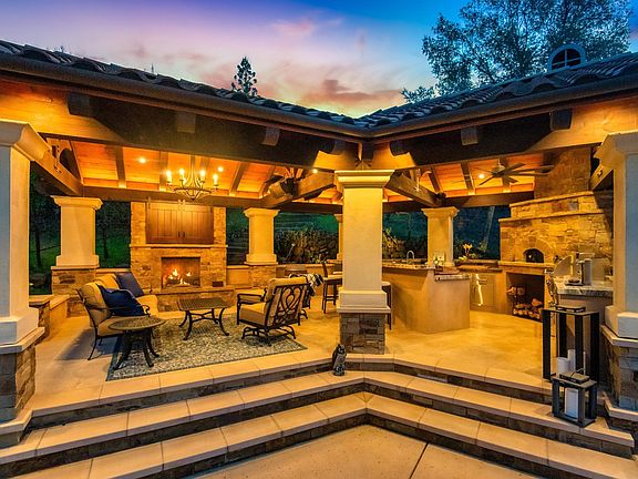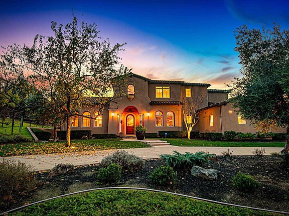 Custom Mediterranean Estate located in the prestigious gated Ruby Hill Community, features 4 ensuite bedrooms, arched entryways, Brazilian walnut hardwood floors, designer lighting and luxury kitchen appliances. Enter the home through the custom, arched front door to the Formal Living Room/Dining Room with a gas fireplace, tray ceilings and French doors. The Gourmet Kitchen includes a Wolf Range and Microwave, Sub Zero refrigerator, Miele dishwasher, butler’s pantry, eat in kitchen and kitchen nook with large, bright windows. The kitchen opens up to a large family room with a gas fireplace, wet bar with a Jennair beverage center and French doors that lead to the backyard. Main level also includes Ensuite Guest Bedroom. Upstairs Primary Bedroom Suite with private balcony and Bedrooms 3 & 4 have an Ensuite Bath. .57 Acre Backyard offers Resort Living with large patio, Pool, Hot Tub and Bocce Ball Court. Custom outdoor living space with fireplace, pizza oven, sink, bbq, two kegs and ice maker. Upsloped vineyard with Merlot grapes can produce 6-8 cases of your own bottled wine. Resort style HOA amenities, top-rated Pleasanton schools, proximity to 680/580/84 freeways, Livermore Valley Wineries, Silicon Valley and San Francisco.
