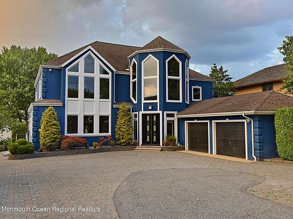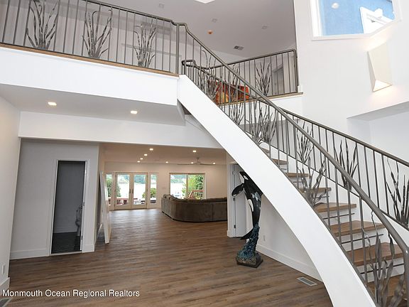 Enjoy magnificent views of the Manasquan River from this custom built contemporary with 9' ceilings and an open floor plan for entertaining family and friends. The dramatic entry with cathedral ceiling and circular staircase makes a superb point of entry. This waterfront home has been remodeled throughout with fabulous features. The kitchen boasts high end appliances including built-in Thermador refrigeration/wine columns, 6 burner range, custom hood, Miele coffee/espresso, cast dimensional glass tile backsplash, stunning quartzite waterfall island and more. Baths are equally luxurious with features such as deluxe vanities, designer lighting and custom tile. The Primary bedroom offers abundant space and incredible en suite complete with steam shower and soaking tub overlooking the river. Included for your boating pleasure, is a vinyl bulkhead, 100' dock, 20' floating dock, and pilings for 40' yacht, 4500lb boat lift. Beautifully manicured landscaping, outdoor lighting, multi-leveled deck and hot tub. Absolutely, all of the comforts you'll need in your new home. Artwork and furnishings are optional and negotiable.